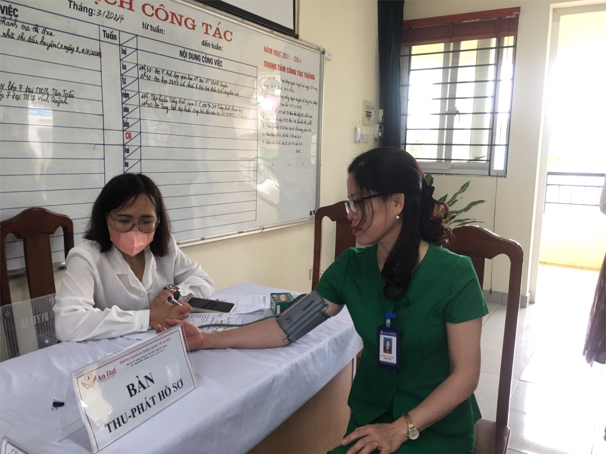 Có thể nói, việc nhà trường tài trợ hoàn toàn gói khám cơ bản là sự động viên lớn đối với CBGVCNV. Với đặc thù công việc của nhà giáo là thường xuyên đứng lớp giảng dạy, Ban giám hiệu trường và cán bộ y tế trường THCS Đại Áng đã lựa chọn gói khám sức khỏe tổng quát từ khám lâm sàng, chẩn đoán hình ảnh đến các xét nghiệm, siêu âm tuyến giáp...Đó đều là những loại bệnh thường gặp do nghề nghiệp mà giáo viên hay mắc phải. Sáng ngày 11/4/2024, nhân viên Phòng khám An Đạt đã đến trường lấy mẫu máu xét nghiệm, ngoài những gói cơ bản, CBGVCNV có thể lựa chọn và đăng ký thêm các xét nghiệm phù hợp với tình trạng sức khoẻ của bản thân.