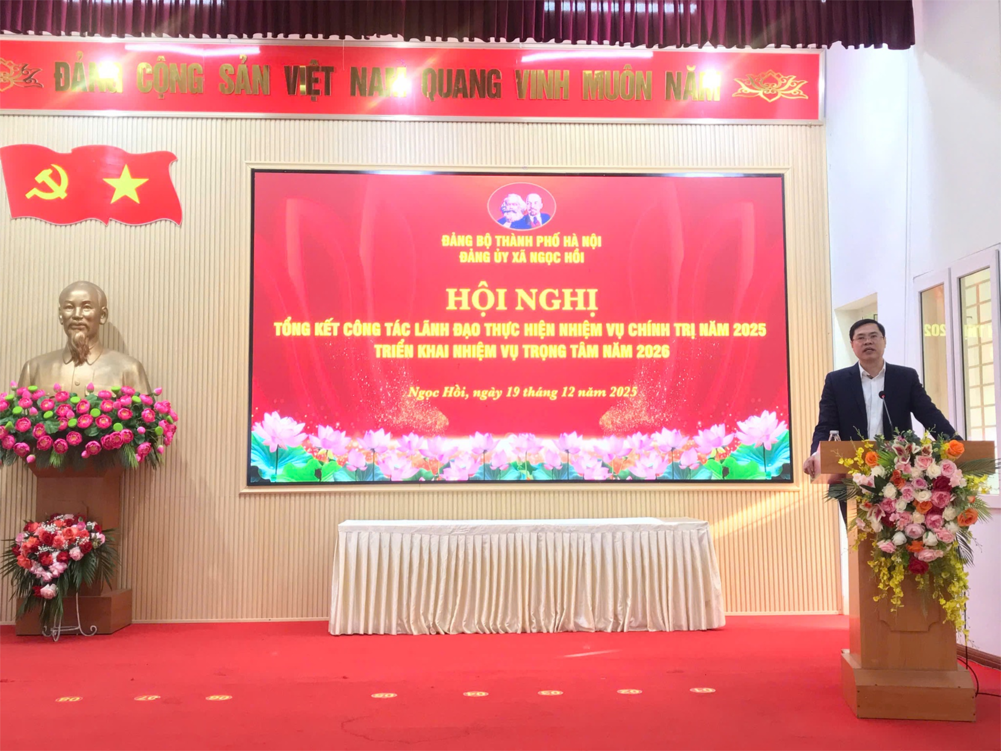 Nhân dịp này, Ban Thường vụ Đảng ủy Xã đã khen thưởng 11 tập thể hoàn thành xuất sắc nhiệm vụ năm 2025; 17 đảng viên hoàn thành xuất sắc nhiệm vụ 5 năm liền (2021 - 2025) và 06 tập thể được khen thưởng chuyên đề năm 2025, qua đó kịp thời động viên các tập thể, cá nhân tiêu biểu, góp phần xây dựng Đảng bộ xã Ngọc Hồi ngày càng trong sạch, vững mạnh. Chi bộ trường THCS Đại Áng vinh dự được Ban Thường vụ Đảng ủy Xã khen thưởng tập thể hoàn thành xuất sắc nhiệm vụ năm 2025, thầy giáo Nguyễn Quốc Đạt được khen thưởng đảng viên hoàn thành xuất sắc nhiệm vụ 5 năm liền (2021 - 2025). Một số hình ảnh Hội nghị.
