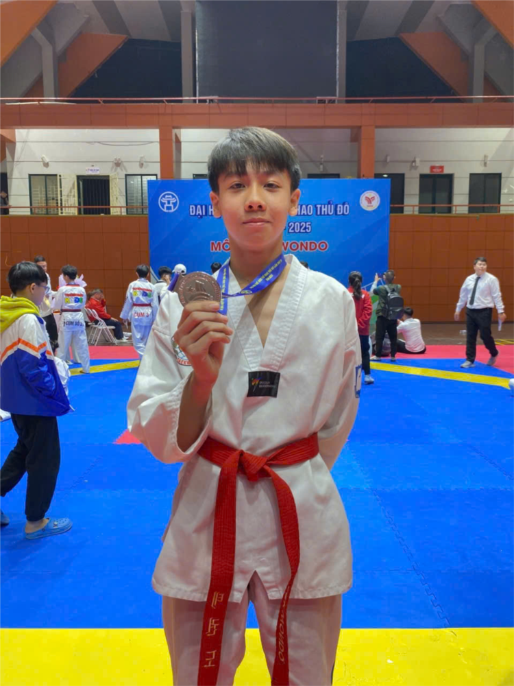 Em Nguyễn Quang Anh, lớp 8A5 trường THCS Đại Áng đã xuất sắc đạt huy chương Bạc nội dung Taekwondo tại Đại hội.