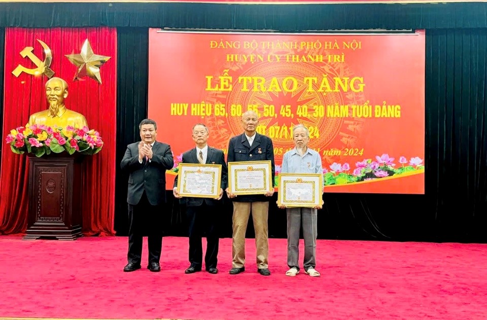 Dịp này, Đảng bộ huyện Thanh Trì có 158 đảng viên được truy tặng, trao tặng Huy hiệu Đảng, trong đó có 2 đảng viên được trao tặng Huy hiệu 65 năm tuổi Đảng sớm, 10 đảng viên được trao tặng Huy hiệu 60 năm tuổi Đảng, 23 đảng viên được trao tặng Huy hiệu 55 năm tuổi Đảng, 22 đảng viên được trao tặng Huy hiệu 50 năm tuổi Đảng, 42 đảng viên được trao tặng Huy hiệu 45 năm tuổi Đảng, 45 đảng viên được trao tặng Huy hiệu 40 năm tuổi Đảng và 14 đảng viên được trao tặng Huy hiệu 30 năm tuổi Đảng.
