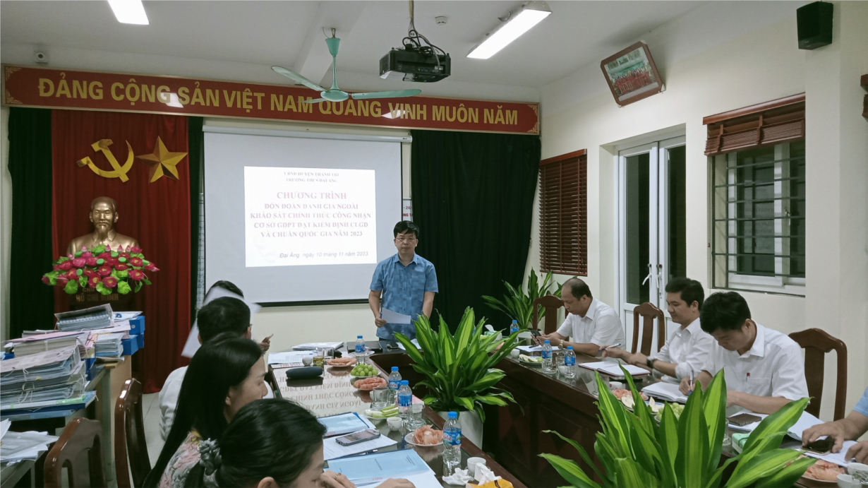 Trong phát biểu tại buổi làm việc, nhà giáo Nguyễn Quang Minh đánh giá cao tinh thần làm việc của đoàn đánh giá ngoài, từ công tác khảo sát sơ bộ đến khảo sát, đánh giá chính thức. Đối với nhà trường, nhà giáo Nguyễn Quang Minh ghi nhận, biểu dương tập thể CBGV và học sinh đã có nhiều cố gắng trong công tác xây dựng trường chuẩn mức độ 2, đánh giá những điểm mạnh nổi bật như trường THCS Đại Áng có bề dày truyền thống; cơ sở vật chất khang trang, hiện đại, nhiều hạng mục công trình đạt chuẩn; chất lượng đại trà, chất lượng mũi nhọn tích cực. Trong thời gian tới, nhà trường cần chú trọng các nội dung như cải tiến chất lượng; tiếp tục tích cực đổi mới, huy động tập thể sư phạm đổi mới; xây dựng trường học hạnh phúc và nâng cao chất lượng học sinh giỏi, chú trọng các hoạt động trải nghiệm, tư vấn tâm lý,...