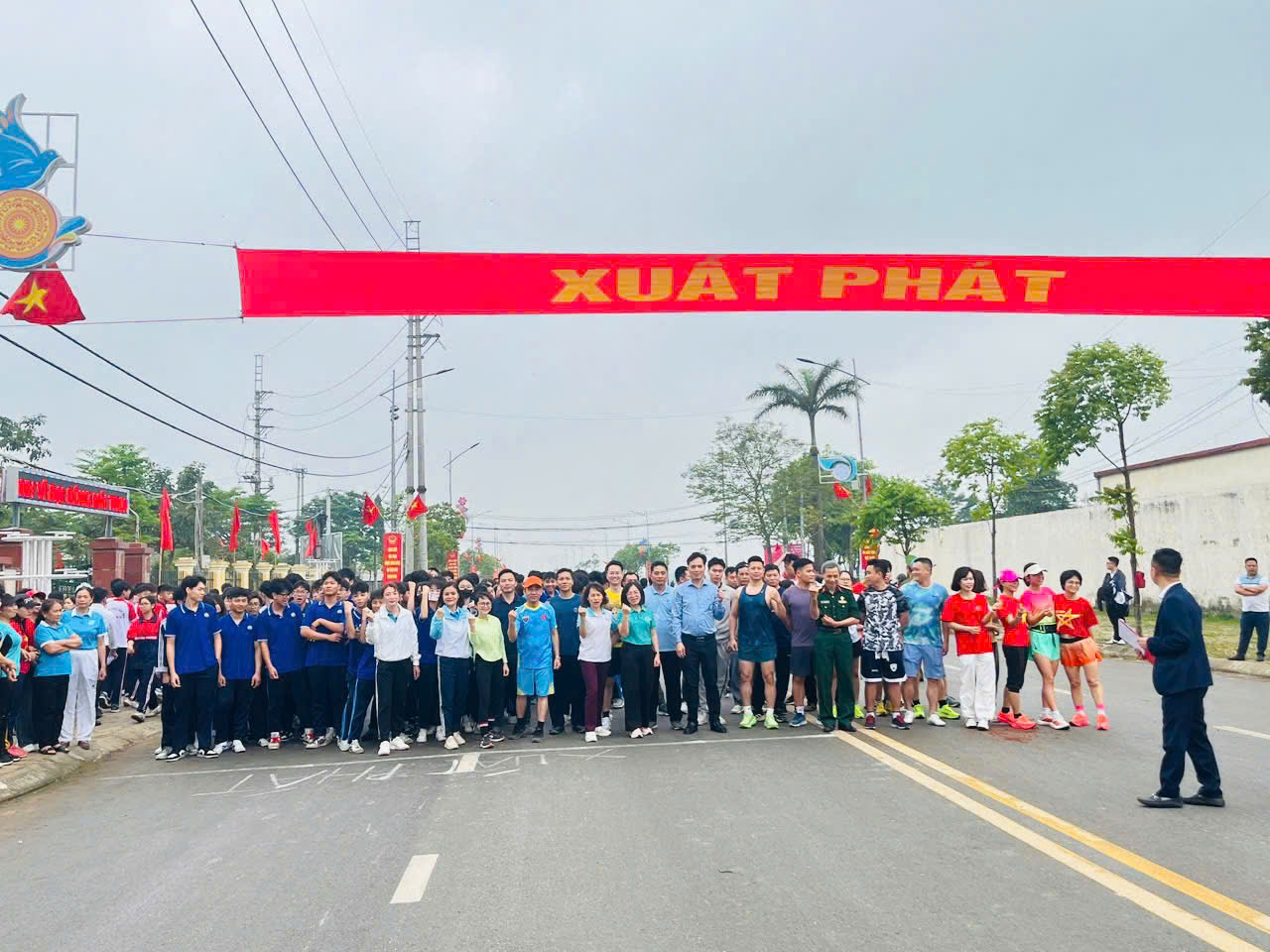 Đoàn tham dự của nhà trường do thầy Tạ Văn Hùng – Phó Hiệu trưởng nhà trường dẫn đầu, cùng sự góp mặt của các em học sinh tiêu biểu đến từ các lớp 8A1, 8A2, 8A3. Ngay từ sáng sớm, thầy và trò đã có mặt đầy đủ, chuẩn bị trang phục gọn gàng, tinh thần phấn khởi, thể hiện sự nghiêm túc và trách nhiệm khi tham gia hoạt động chung của địa phương.