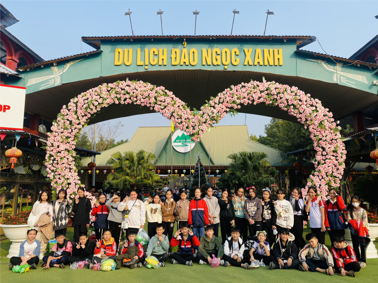 Sau khi tham quan khu di tích K9, quý thầy cô, các bậc phụ huynh cùng các em học sinh tiếp tục lên xe tiến về khu du lịch Đảo Ngọc Xanh. Ngay từ khi đặt chân xuống địa điểm du lịch, tất cả mọi người đều bị thu hút bởi khung cảnh rộng lớn và đầy màu sắc tươi vui, mới lạ. Các em học sinh thích thú cùng nhau trải nghiệm những trò chơi tại nơi đây và chụp ảnh lưu niệm…