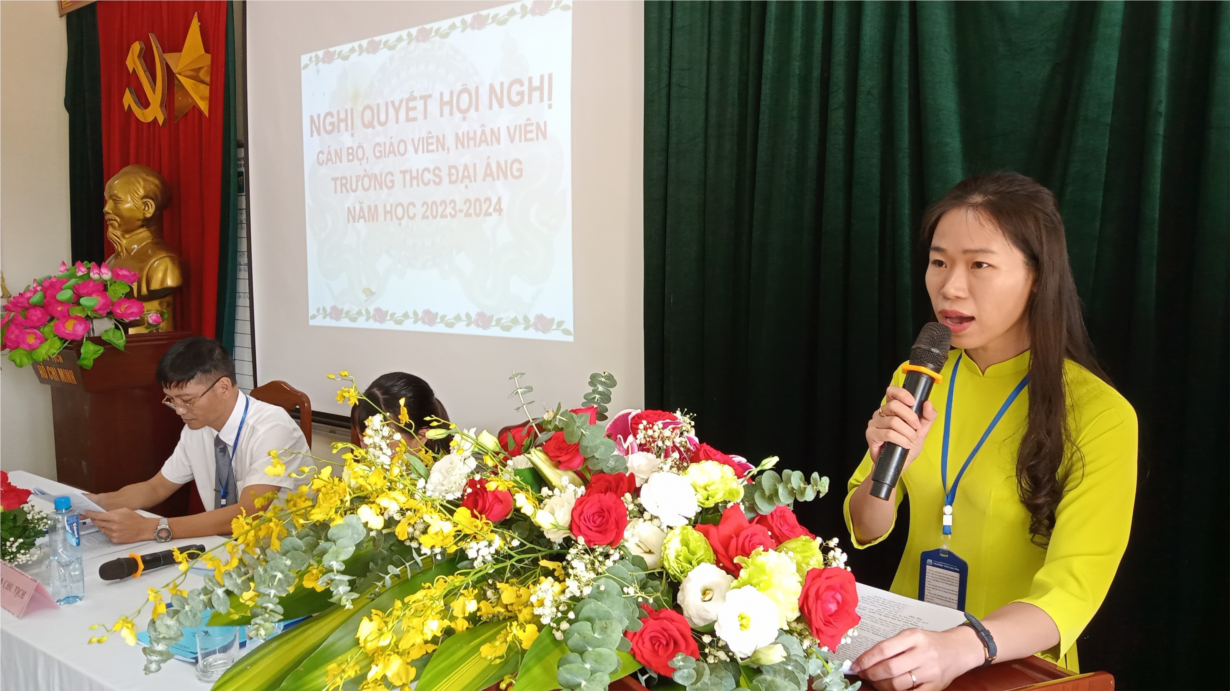 Về dự và động viên Hội nghị có bà Nguyễn Thị Quang, Đảng ủy viên, Phó Chủ tịch HĐND xã Đại Áng; Ông Dương Đức Vinh, Phó Chủ tịch UBND xã Đại Áng; Bà Tô Thị Thanh Thu, Trưởng ban đại diện Hội cha mẹ học sinh trường THCS Đại Áng cùng toàn thể các thầy cô là cán bộ, giáo viên, nhân viên nhà trường.